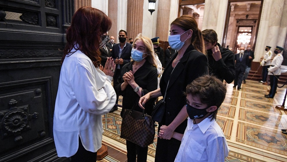 El velatorio del expresidente comenzó ayer en horas de la noche en el Salón Azul del Senado de la Nación. El cortejo fúnebre fue recibido en el Congreso por la vicepresidenta y presidenta del Senado, Cristina Fernández de Kirchner.