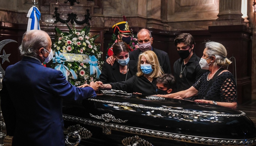 La despedida se inició con una ceremonia íntima de la que participaron la exesposa de Menem, Zulema Yoma, su hija Zulemita, su hermano Eduardo y sus nietos, entre otros familiares.