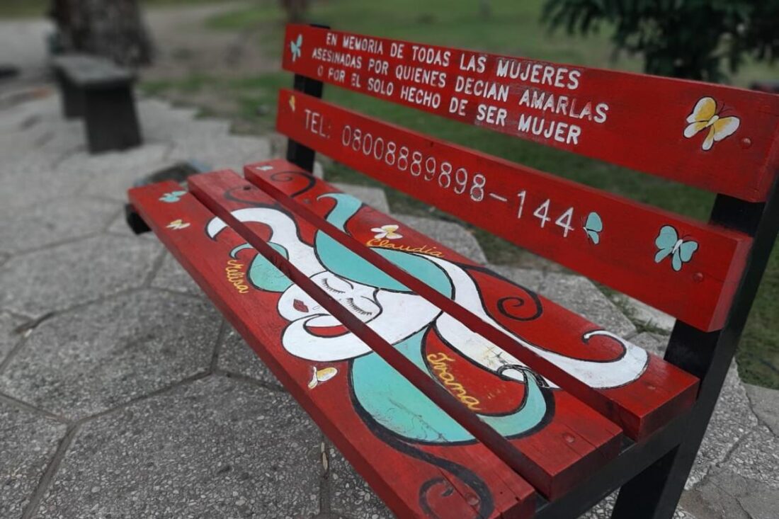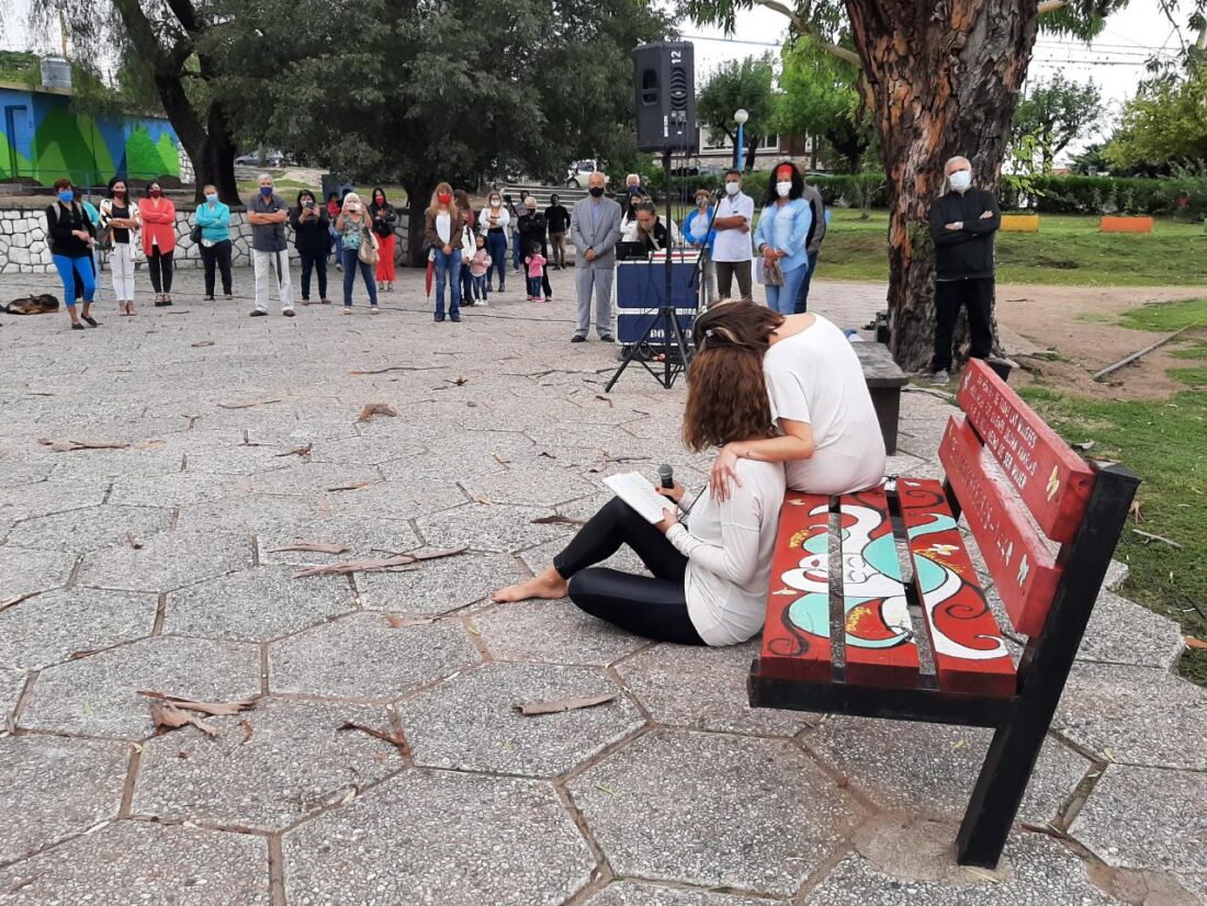 Los nombres de las tres víctimas de femicidios en la ciudad de La Falda fueron escritos en las tablas del banco rojo de la Plaza San Martín en su homenaje. Familiares, amigos y amigas participaron este jueves del emotivo acto de reinauguración de este monumento urbano, en coincidencia con el Día Internacional de la Mujer.