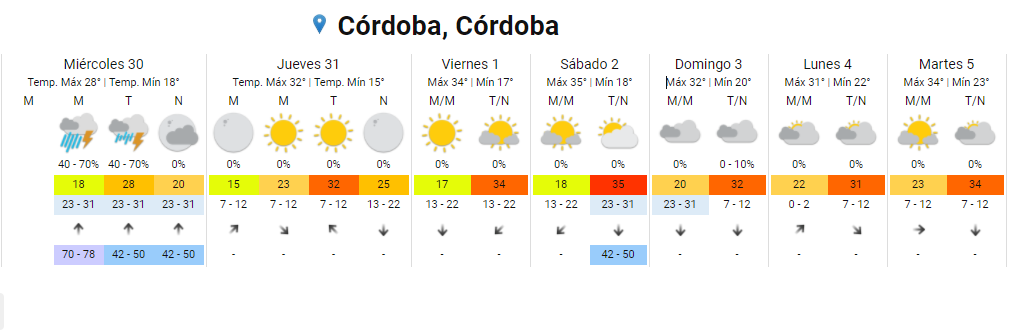 En cambio el domingo 3, el tiempo se presentará inestable, con probabilidad de chaparrones aislados y vientos leves del sector Norte. La mínima pronosticada es de 20°C y la máxima de 32°C.