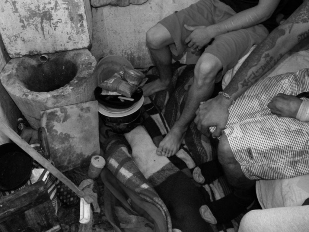 Adriana denuncia que «atan de pies y manos a las personas, a veces también el torso y el cuello para que queden completamente inmovilizadas. Cuando están mucho tiempo, terminan orinándose y defecándose encima, esto es producto de lo que nosotros llamamos «chalecos químicos», un cóctel de psicofármacos que se les administra para dejar dopadas a las personas por días enteros».