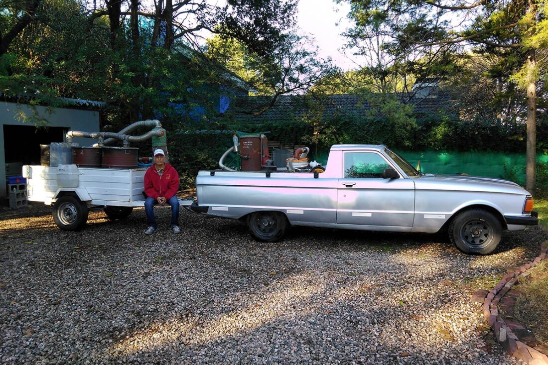 En 2018 construí el gasificador en el patio de mi casa y quedé impresionado por la potencia de la «gasura» (abreviación de gas de basura). Compre una Ford Falcon Ranchera modelo 82, monté el gasificador en la caja y la hice arrancar utilizando basura.