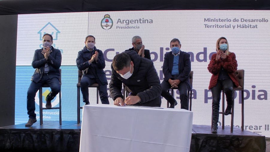 «Nosotros no preguntamos a la hora de impulsar obras de qué color político son los intendentes, continuó, y recordó el Plan de Viviendas Eva Perón, casas dignas para los trabajadores y las trabajadoras, «algo que después las dictaduras lo convirtieron en Viviendas Sociales, de menores dimensiones, baja calidad y que no satisfacían las necesidades de las familias. Venimos a proponer otras vez viviendas dignas y confortables porque es un derecho de cada argentino y argentina la casa propia», concluyó.