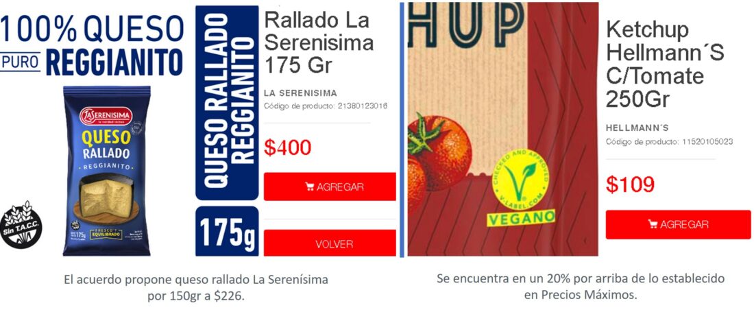 Las mayores brechas entre la lista del Gobierno y los catálogos de los supermercados se advierten en marcas de grandes capitales del sector alimentario. Se trata de empresas nucleadas en la federación COPAL, que en algunos rubros concentra la producción de alimentos. Algunas de las empresas más poderosas que la conforman son: Arcor, Molinos, Kraft Food, Nestlé, Pepsi, Unilever y La Serenísima. En los rubros donde hay menos concentración y el mercado está repartido entre más y distintos oferentes hay mayor acatamiento al acuerdo.
