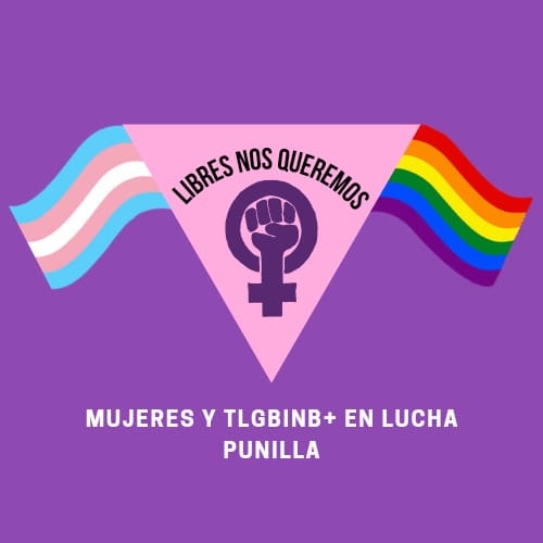 Somos #LibresNosQueremosPunilla, una COLECTIVA transfeminista que nace con el objetivo puesto en la lucha y la resistencia desde el marco de los derechos humanos (transversal a nuestras actividades) y comenzando a trazar acciones que nos incluya, para abrazarnos sin culpas ni miedos, para sentirnos que somos parte sin que nadie nos expulse, para gritar libertad entendiendo que cada letra es arrancada de nuestros cuerpos que se transforman en banderas de luchas y en las calles.