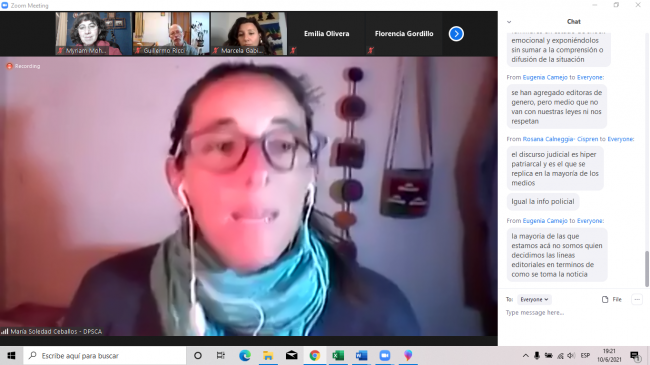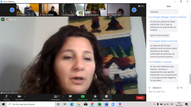 En la primera jornada, a cargo de la Defensoría del Público de Servicios de Comunicación Audiovisual, se trabajó sobre el tratamiento mediático responsable de casos de violencia contra las mujeres. Allí, Ceballos y Gabioud, facilitadoras de la capacitación, trabajaron sobre las sugerencias y recomendaciones para un buen abordaje de la construcción de noticias e imágenes en los medios. En el taller virtual, realizado vía zoom, hubo una activa intervención y participación de periodistas, comunicadores y comunicadoras, que tomaron la capacitación, expresando sus dudas y aportes en relación a las diferentes temáticas abordadas.
