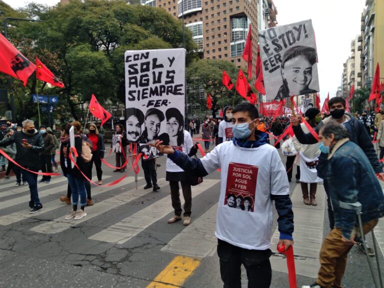 A un mes del choque múltiple provocado por un conductor que manejaba alcoholizado, hubo esta tarde una nutrida marcha en el centro de la ciudad. Agustín Burgos y Sol Viñolo perdieron la vida tras el choque; Fernanda Guardia resultó gravemente herida.