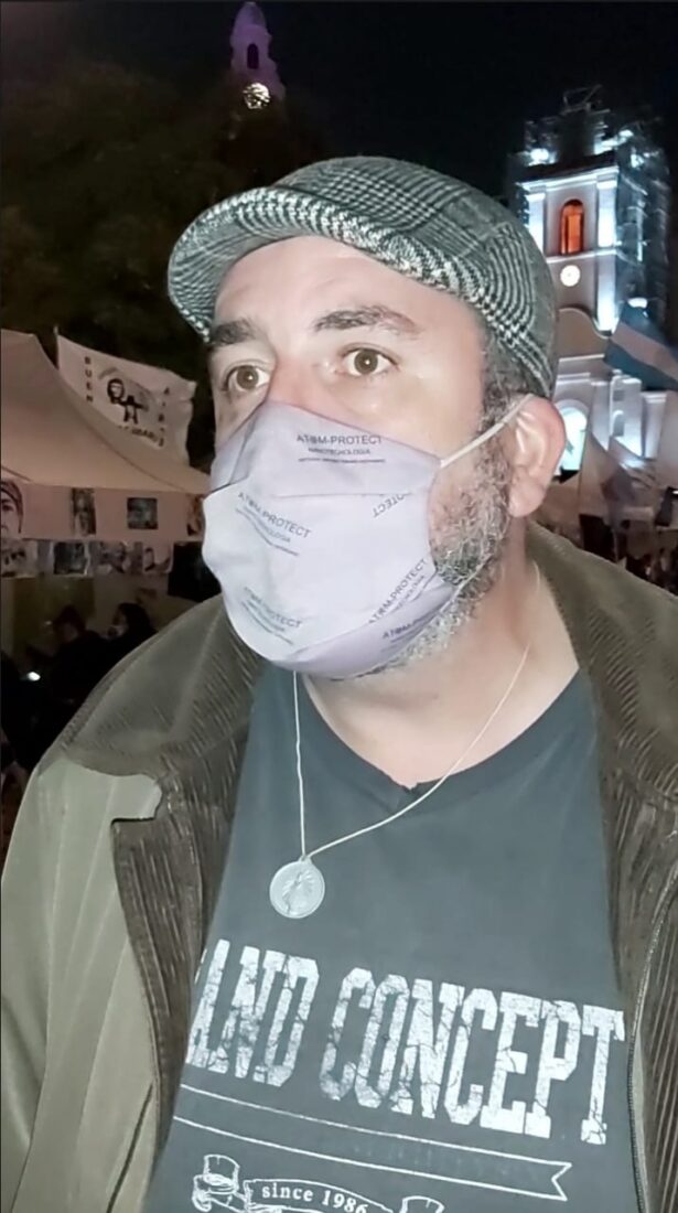 «Son apenas cuatro días por los dos mil que lleva ella encarcelada como presa política» arranca diciendo Fernando mientras de fondo se escuchan melodías y el bullicio de quienes desafían la noche que avanza. «Ya van a ser casi cinco años desde que le pusieron las esposas y la exhibieron como un trofeo, como una revancha oligárquica».