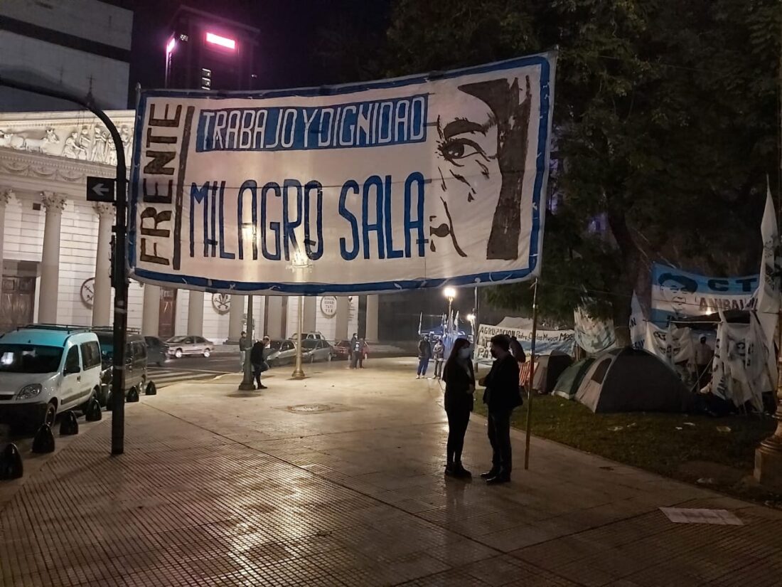 Desde ACNoticias estuvimos cubriendo el acampe que comenzó el 6 de julio y culminará hoy en Plaza de Mayo. Allí pudimos dialogar con Fernando Gómez del Frente Milagro Sala integrante del equipo organizador de esta acción que pretende visibilizar la «situación injusta que vive la compañera».