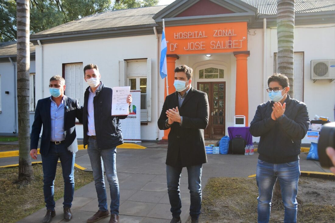 Por último, antes de realizar la recorrida por el nosocomio, hicieron entrega de insumos y aparatología al intendente José Bria y a los mandatarios de localidades vecinas: Celia Giorgis, Intendenta de Seeber; Evangelina Vigna; intendenta de Colonia Vignaud y Víctor Blengino, jefe comunal de Colonias San Pedro.