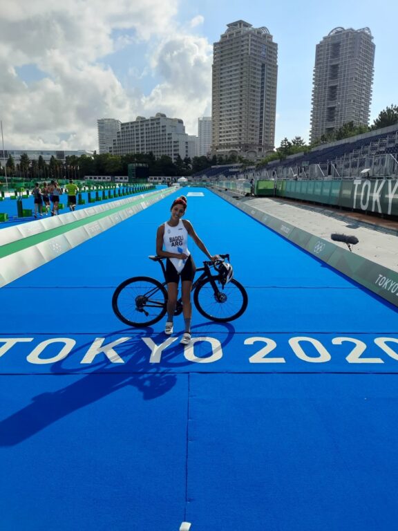 En la mañana de Tokio (atardecer en Argentina), Romina Biagioli se puso el traje de la ilusión de la deportista amateur. En la imagen olímpica de la persona nadando, andando en bici y corriendo. La deportista cordobesa participó de la extenuante prueba del triatlón femenino.