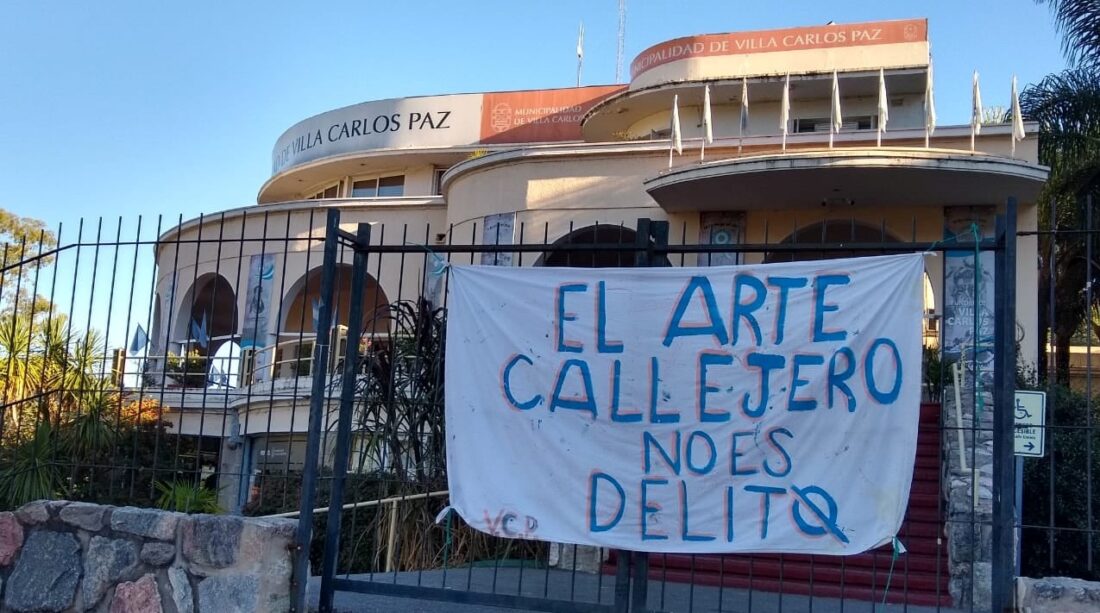 Con dos enormes banderas y haciendo malabares en la explanada municipal, dos jóvenes artistas callejeros denunciaron persecución por parte de personal de Seguridad Urbana municipal y de la policía de la provincia de Córdoba. Señalan que no los dejan trabajar en los semáforos y que en los últimos operativos les confiscaron las herramientas con las que hacen malabares y que ahora tiene que pagar una multa de 3.500 pesos para recuperar los elementos.