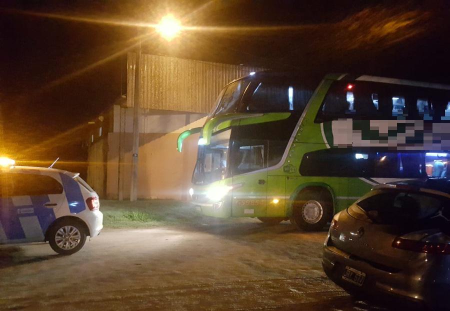 El operativo en esta ocasión, se inició a las 5.15 de la madrugada del sábado, cuando arribó el colectivo, el que fue escoltado hasta el salón de barrio Monte Grande, adecuado como centro de febriles municipal para realizar los hisopados por el Covid-19.