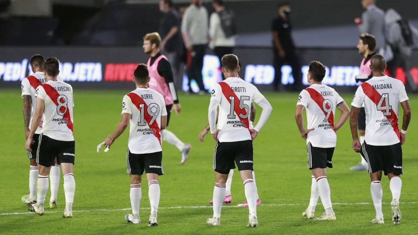 River Plate: Franco Armani; Paulo Díaz, Robert Rojas, David Martínez; Alex Vigo, Enzo Pérez, Nicolás De La Cruz, Jorge Carrascal, Milton Casco; Matías Suárez y Julián Álvarez. DT: Marcelo Gallardo
