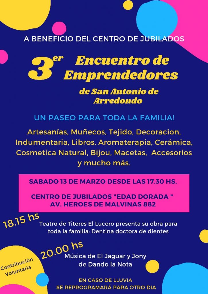 Para agendar: Este sábado 13 de marzo en el centro de jubilados Edad Dorada (Av. Héroes de Malvinas 882) desde las 17:30hs. En caso de lluvia el encuentro se reprogramará para otro día. Para obtener más información, puede comunicarse a través del Facebook Emprendedores de San Antonio de Arredondo y del Instagram @emprendedores.san.antonio.