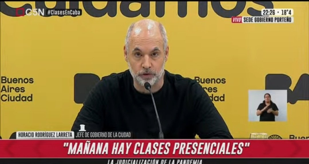 En una conferencia de prensa realizada a las 22.30, el Jefe de Gobierno de la CABA dijo: «Mañana tenemos clases presenciales en las escuelas de la Ciudad de Buenos Aires». Celebró el apoyo de la comunidad y «que la energía positiva, con los miles y millones (SIC) que se manifestaron en las calles en defensa de la educación se traduzca en mayores cuidados».