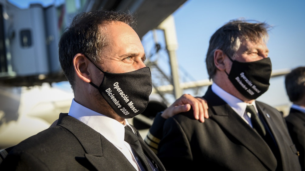 De acuerdo con lo informado, el avión Airbus 330-200, especialmente modificado en su interior para el transporte de las vacunas, partió con una tripulación compuesta por cuatro comandantes, cuatro copilotos y dos de refuerzo, además de otros tripulantes de cabina y técnicos. En el mismo vuelo que traerá las vacunas está previsto que regresen al país los integrantes de la comitiva del Ministerio de Salud, encabezada por la secretaria de Acceso a la Salud, Carla Vizzotti, la asesora presidencial Cecilia Nicolini y representantes de la Administración Nacional de Medicamentos, Alimentos y Tecnología Médica (Anmat), que se encuentran desde la semana pasada en Moscú como parte de las gestiones por la vacuna.